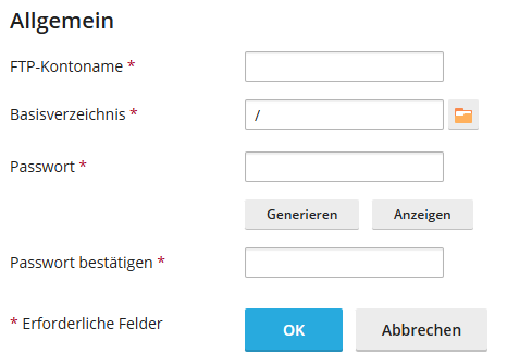 6. Nun können relevante Daten wie der Kontoname, das Basisverzeichnis sowie das Passwort eingegeben werden.