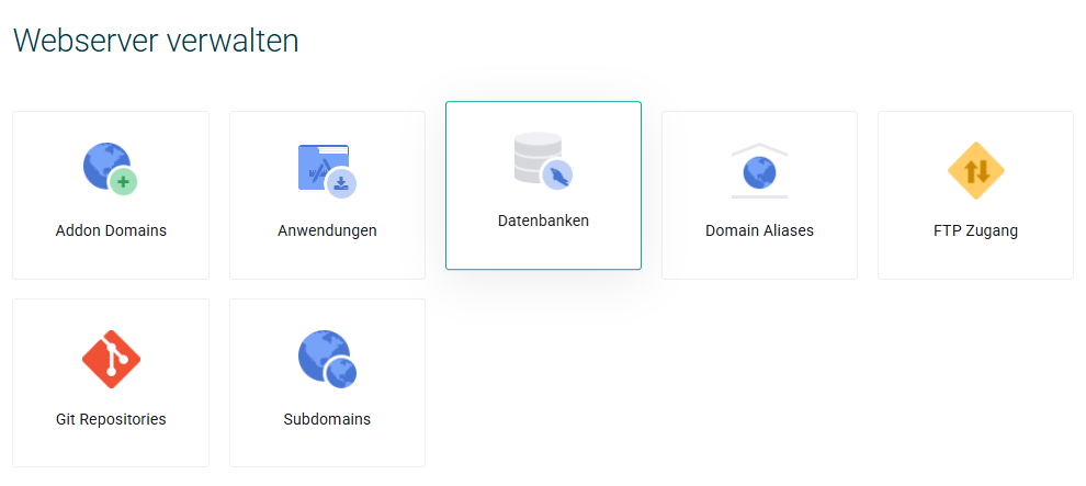 - Meine Dienste > Webserver bearbeiten: Klick auf "Datenbanken".